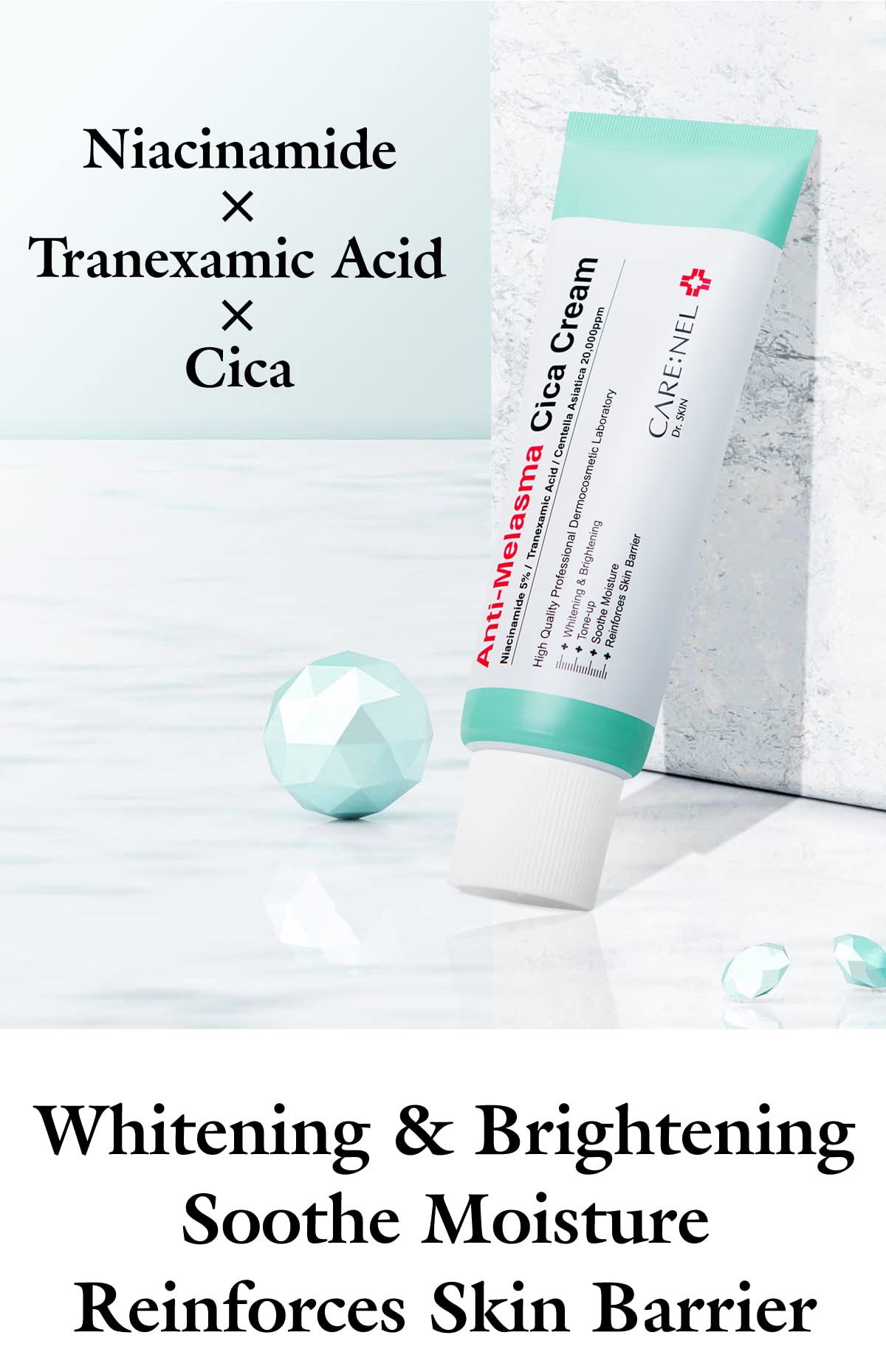 CARE NEL Anti-Melasma Cica Cream is a premium whitening functional cream containing 5% of niacinamide and 2% of Centella Asiatica extract.