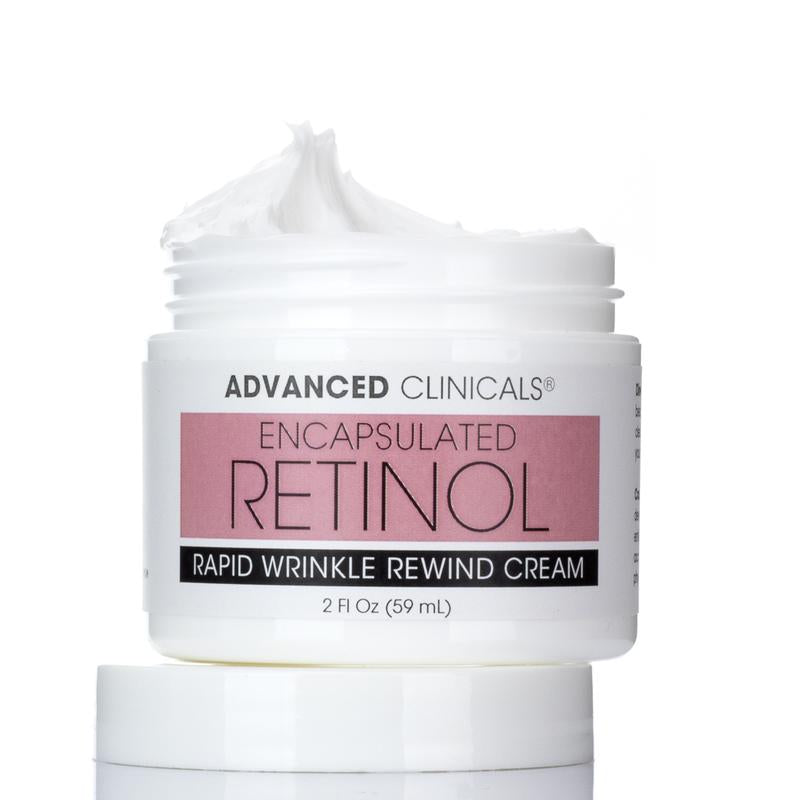 Advanced Clinicals Encapsulated Retinol Gel-Cream is exactly what its name suggests: A light, encapsulated Retinol that remains potent and highly effective in a water-based gel-cream. While it is boosted with a potent slug of Retinol, it is still relatively light and gentle. This cream targets wrinkles, sun damage, large pores, and discoloration. Both powerful and hydrating, it absorbs instantly into the skin, leaving your face looking full, replenished, and youthful. This skincare product offers everything you want, need, and expect out of a Retinol cream, but in a much lighter, smoother texture. 100% Clean Beauty, Paraben-Free, Alcohol-Free, Phthalate-Free, Fragrance-Free, and made in the USA.
