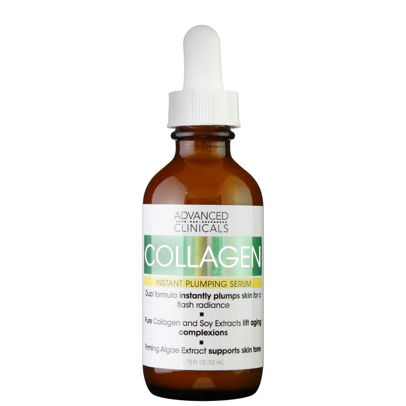 Advanced Clinicals Collagen Serum supports the natural production of collagen in the epidermis. After using this face serum, your skin will look plumper and firmer than ever before. Especially helpful for lip lines, advanced formula will visibly restore volume to crevices. Powerful Soy Complex diminishes the look of crepe-like skin. Transform yourself and your skin with Collagen Instant Plumping Serum for a youthful glow. Soy Extracts target sagging, lost elasticity and facial lines. Paraben-Free, gentle alternative to injections.