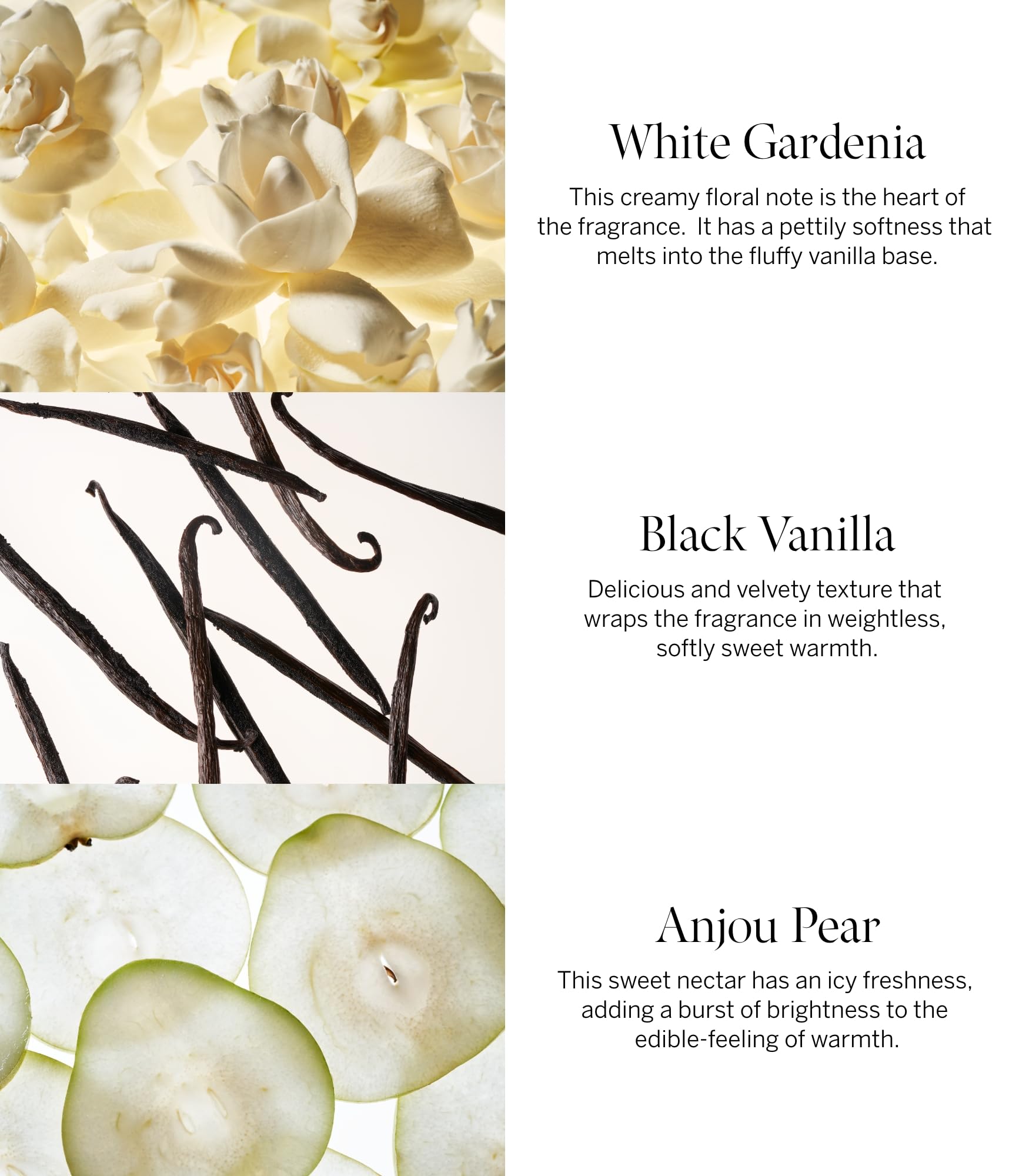 Notes: white gardenia, Anjou pear, black vanilla