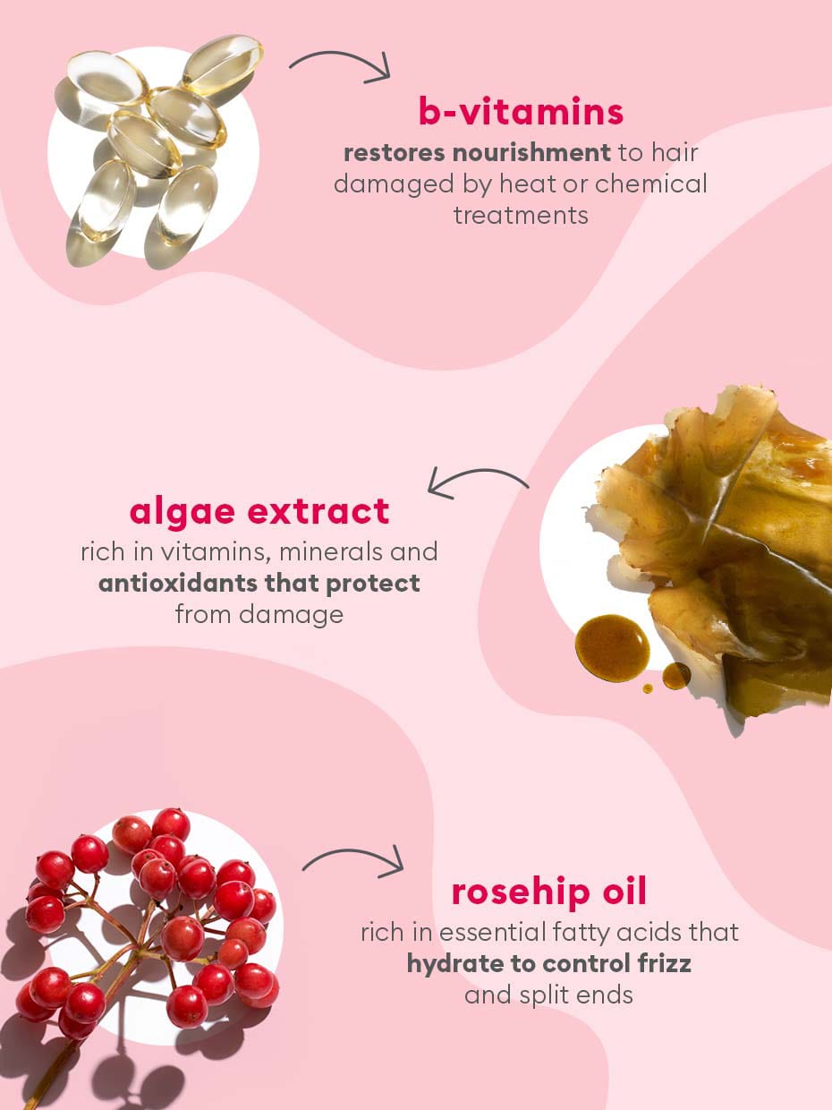 This conditioner is clinically proven to decrease hair breakage after two uses. It is formulated with algae extract, panthenol, and a unique argan oil microencapsulation technology to visibly repair breakage and strengthen hair. Formulated with 95% naturally derived ingredients.