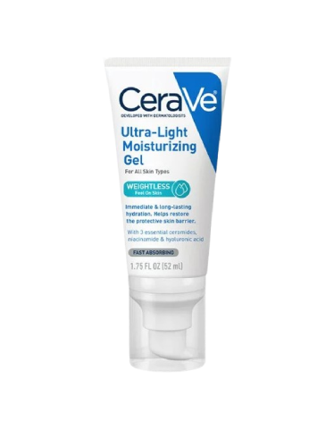 CeraVe Ultra-Light Moisturizing Gel provides lasting hydration with a weightless feel on skin. This hydrating facial gel delivers powerful moisturizing ingredients in a refreshing, lightweight texture. Its fast-absorbing, water-based formula glides onto skin easily without tugging or pulling. Skin is left feeling softer, soothed, and hydrated after use. It also layers well under makeup and sunscreen.