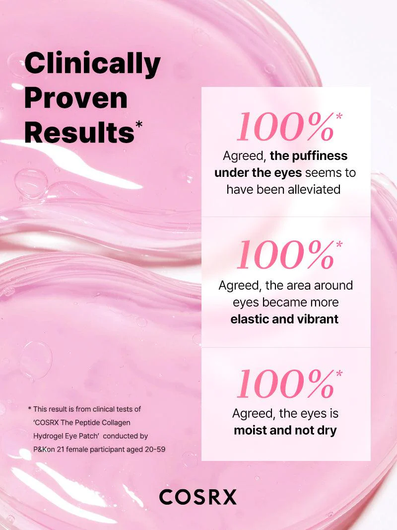 The Peptide Collagen Eye Patches, enriched with 4 powerful peptides and collagen, work to reduce puffiness, hydrate, and revitalize your under-eye area, leaving your skin looking refreshed and radiant.