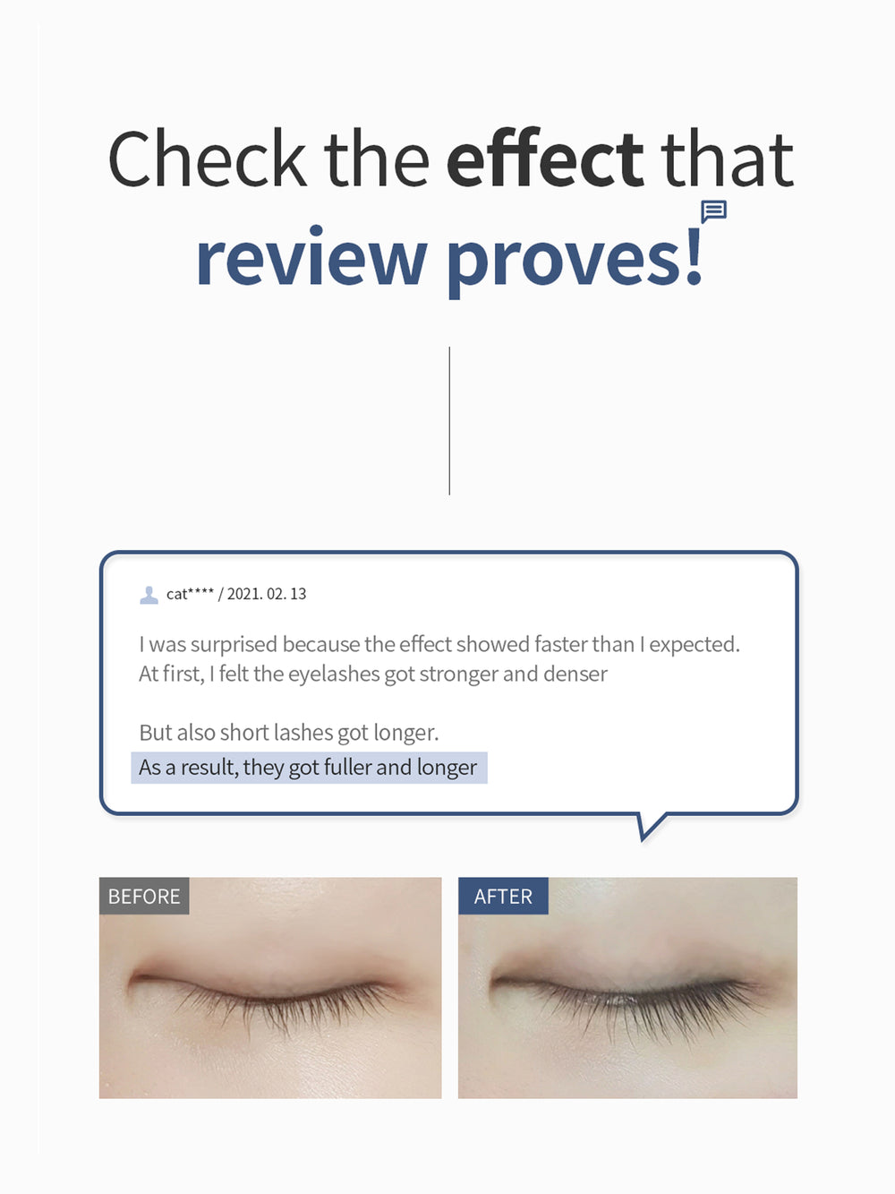 ✓Watery serum type with peptide and amino acids : Thanks to transparent liquid formula with no oil and low viscosity, it is available for use after eyelash extension or eyelash perm.