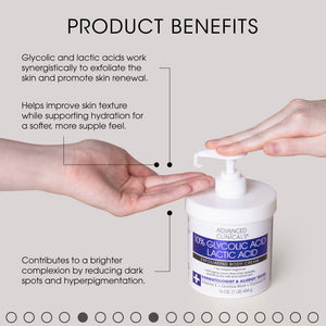 This body cream, powered by 10% Glycolic and Lactic Acid, gently exfoliates away rough, dry skin for a softer, more radiant complexion. Enriched with Squalane, Licorice Root, and Hyaluronic Acid, this luxurious cream hydrates, smooths, and visibly improves skin texture, leaving skin velvety soft and luminous. Rich, velvety formula absorbs easily, delivering gentle daily exfoliation for a refreshed, even toned skin