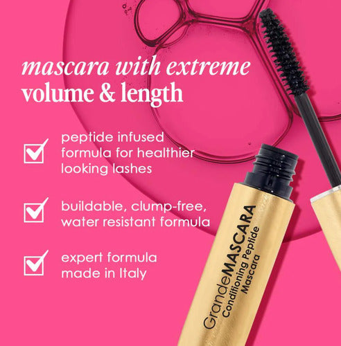 Condition while you coat! This exclusive mascara not only provides extreme volume and length, but is infused with a lash-loving blend of peptides, panthenols, and natural waxes. These key ingredients condition your lashes while you coat them to promote the appearance of healthier looking lashes over time. Its buildable, clump-free, water-resistant formula is easily removable to prevent lash breakage while keeping the lashes flexible and strong. The applicator brush is made with the perfect combination of hard and soft fibers to lift lashes and achieve ultimate volume. Ophthalmologist tested. Suitable for contacts and lash extensions