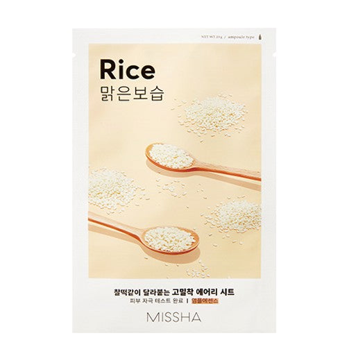 Missha Airy Fit Sheet Mask Rice is a facial mask for soft and fresh skin. Based on rice extract to treat dull skin. It cleans the face of accumulated dirt, improves skin texture, unifies the tone of the skin, provides freshness, and glows effect.
