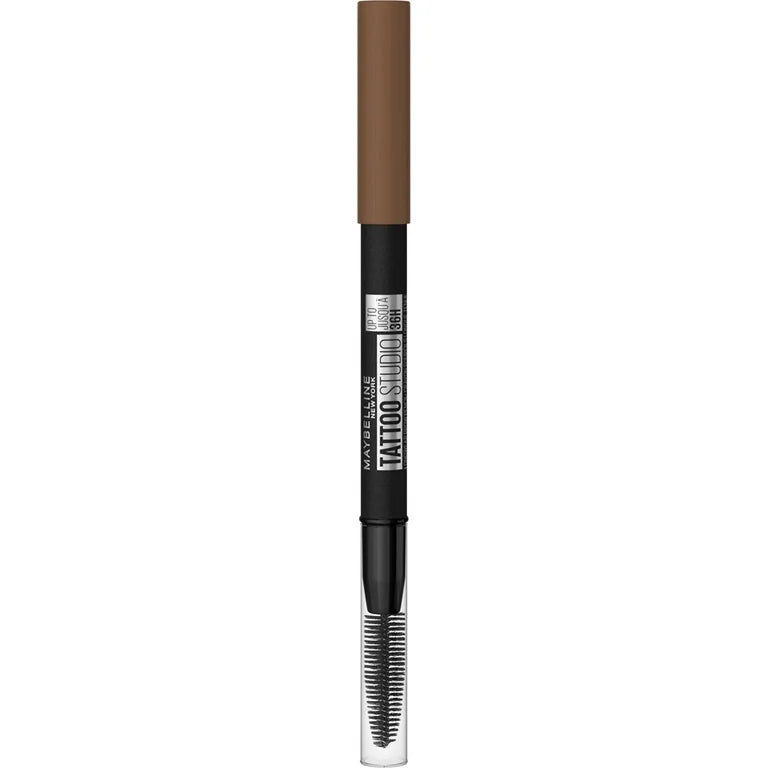 Maybelline TattooStudio Tattoo Brow 36HR Pigment Brow Pencil is an easy-to-use, ultra-performance brow pencil. Get 36H, long-lasting waterproof brow impact with ease. This eyebrow filler is made with bold pigments, delivering the highest levels of pigment in an eyebrow pencil. Tattoo Brow 36HR Pigment Eyebrow Pencil defines, fills, and fixes uneven eyebrows without smudging and fading throughout the day. Tattoo Brow 36HR includes a spoolie eyebrow brush on one end for defined, blended, and natural-looking brows. Available in six ultra-performing and ultra-inclusive shades that show up on diverse skin tones.