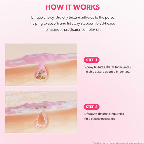 Chewy and stretchy texture adheres to the pores, helping to absorb and lift away blackheads.