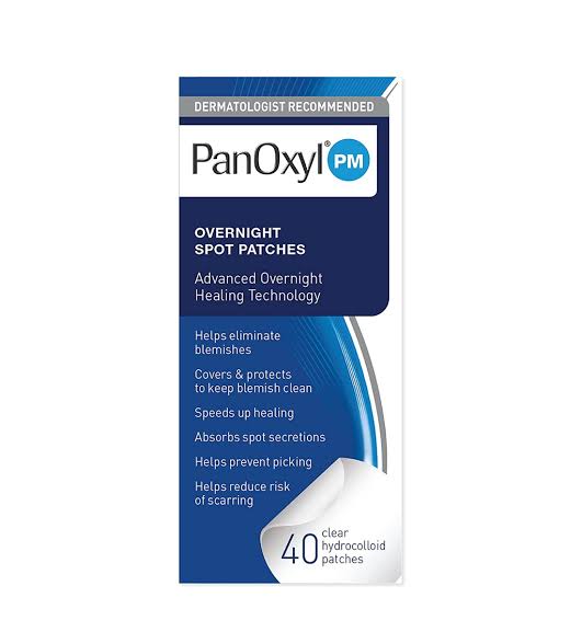 When the zit has got. to. go. and fast. PanOxyl PM Overnight Spot Patches help eliminate blemishes by absorbing pus and fluids for faster healing. These latex-free hydrocolloid patches are safe for all skin types and designed to help protect skin, heal spots and prevent picking, which can lead to scarring. PanOxyl Spot Patches are made in the USA in a certified facility. They’re just a little thicker than some other acne dots, so they protect your blemish better and can absorb more pus and fluids. Each box contains 40 patches in two sizes, 9mm and 12mm. PanOxyl Spot Patches contain no parabens, no fragrances, no sulfates, no dyes and no latex. To use, cleanse and dry skin. Select the patch size that covers your spot, then apply and leave on overnight. In the morning, slowly remove the patch. Cleanse and dry the affected area, and tackle the day with confidence.