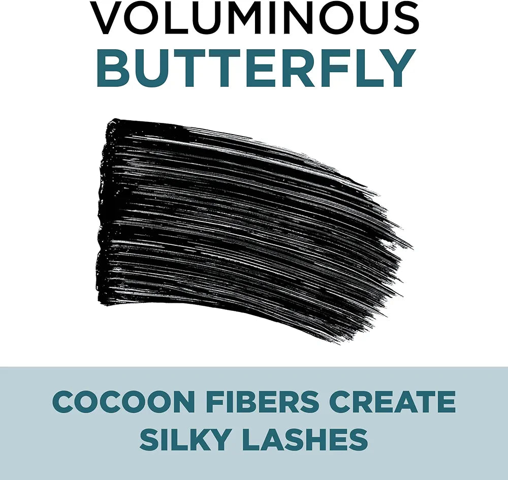 L'Oreal Paris Voluminous Butterfly Waterproof Mascara, 871 Blackest Black, Stretch and extend your lashes like wings! L'Oreal Paris Voluminous Butterfly Waterproof Mascara is a volumizing mascara that creates a fanned-out lash look. It's revolutionary Butterfly Brush with asymmetrical lash line shape extends and lifts outer corner lashes to give you a winged-out effect, instantly volumizing lashes at the roots and stretching lashes outward. The unique Cocoon Fibers instantly wrap lashes in a soft, delicate veil to create silky, spectacular lashes that flutter. Packaging may vary. What you receive may not be what is reflected on site.