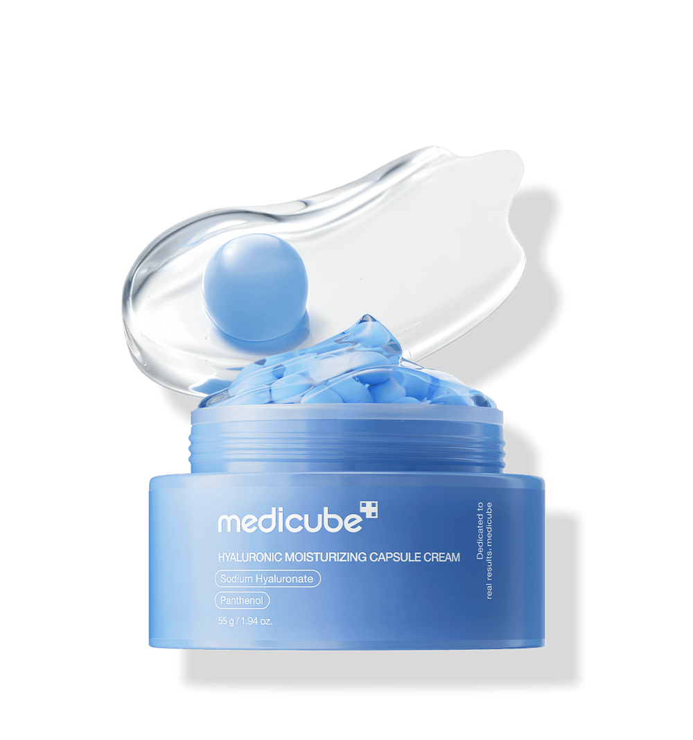 Medicube - Hyaluronic Moisturizing Capsule Cream 50ml is a hydrating cream that replenishes the skin with essential moisture using advanced hyaluronic acid technology. Designed to deliver deep hydration, this cream features encapsulated moisture capsules that release upon application, ensuring a fresh and dewy finish that lasts throughout the day. Its lightweight formula is suitable for those seeking a balance between rich moisture and a non-greasy feel.