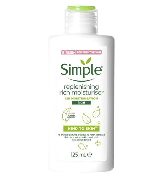 Simple Kind to Skin Replenishing Rich Moisturiser instantly doubles your skin's hydration. It works for up to 24 hours, leaving your skin feeling silky and nourished all day.