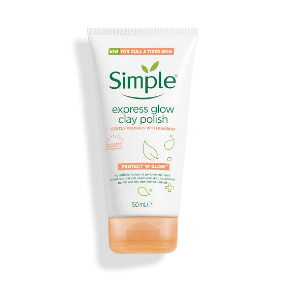 Simple Protect 'n' Glow Express Glow Clay Polish instantly smooths, brightens and revitalises dull skin with natural clay and bamboo exfoliators. Like all Simple products, it’s 100% free from artificial colour and perfume and has no harsh chemicals that can upset your skin.
