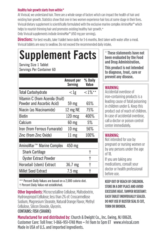 Healthy hair starts from within. Stress, hormonal changes, poor nutrition, aging, menopause, post-pregnancy, heredity, UV radiation or hair treatments can impact the health of your hair and lead to thinning and excess shedding. Viviscal Hair Growth Supplements have been scientifically proven to nourish thinning hair and promote existing hair growth.*
