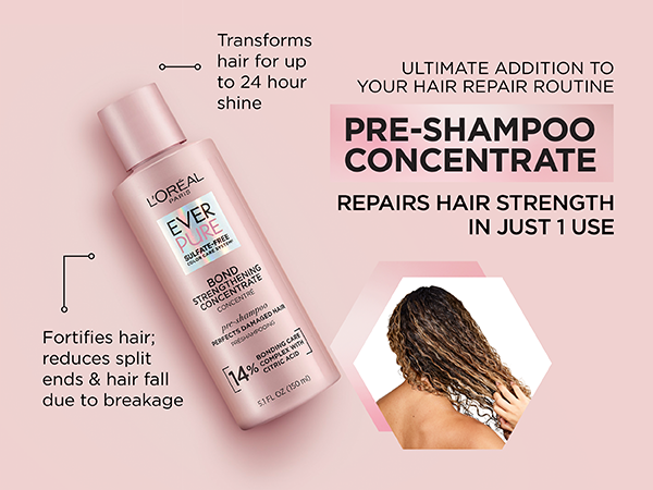 EverPure Bond Strengthening Pre-Shampoo Treatment strengthens weak hair from the inside out. When hair is colored, bleached and damaged it can become weak from within. The EverPure Bond Repair system penetrates inside the hair cortex to rebuild weak hair bonds. The pre-shampoo treatment formula: