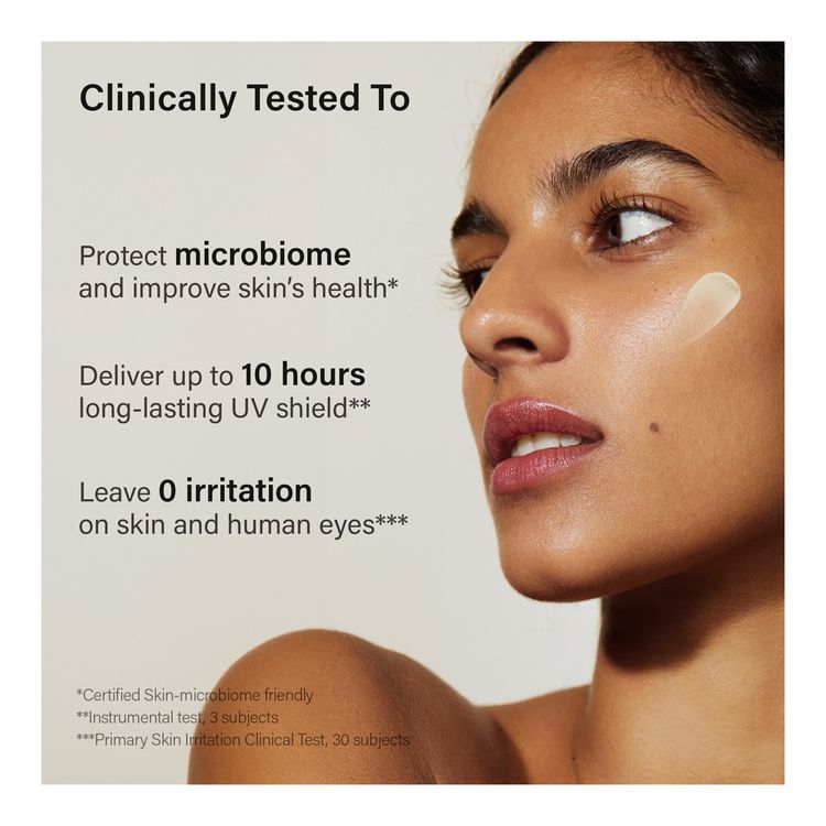 This sheer, non-irritating facial sunscreen absorbs quickly to deliver SPF 50+ protection for up to 10 hours without leaving a white or greasy residue on the skin. Infused with antioxidant-rich plants, such as kale, pine leaf and basil, it helps to soothe and nourish your sensitive skin, while protecting the skin from pollution.