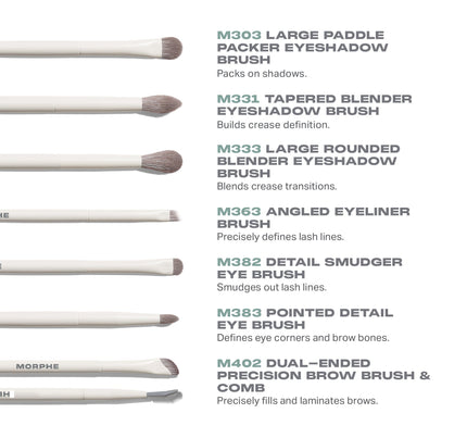 DEFINE, LINE, AND FRAME. Meet your seven most essential eye and brow brushes. Each brush in the Eye Want It All 7-Piece Eye Brush Set is expertly engineered with superior-grade, silver ion-infused bristles that are known to have antibacterial benefits and pro-perfected head densities and shapes. Get the most out of your makeup application, with less instant grime, fraying, shedding, and streaking.