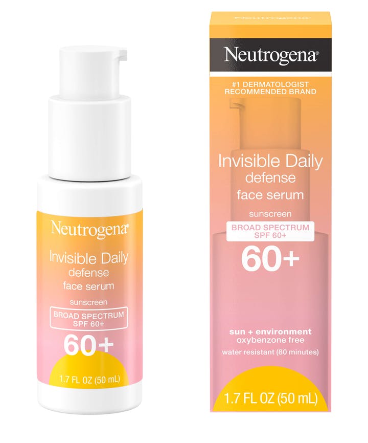 Take protection to the next level with NEW multi-tasking Neutrogena Invisible Daily™ Defense Face Serum with SPF 60+. This innovative formula is invisible on all skin tones, leaving skin feeling soft and smooth with no white cast. Developed with broad spectrum UVA/UVB protection and antioxidants, this hydrating serum works double duty to help fight against environmental aggressors like the sun, cold, ozone and pollution, while enhancing skin’s natural radiance.