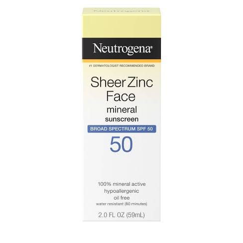 Neutrogena Sheer Zinc Face Sunscreen Lotion Broad Spectrum SPF 50 is a mineral sunscreen with Purescreen® naturally-sourced 100% zinc oxide technology. This gentle formula delivers superior broad spectrum protection against burning UVB and aging UVA rays. Plus, it's mild even on sensitive skin, and it's free of fragrance, parabens, phthalates, dyes, and irritating chemicals.
