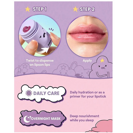 Join the cuteness overload with the SHEGLAM x Adventure Time "Oh My Glob" Tinted Lip Mask! Inspired by the iconic Lumpy Space Princess, this ultra-hydrating tinted lip mask delivers a glossy, sheer purple tint that enhances your natural lip color while deeply moisturizing.