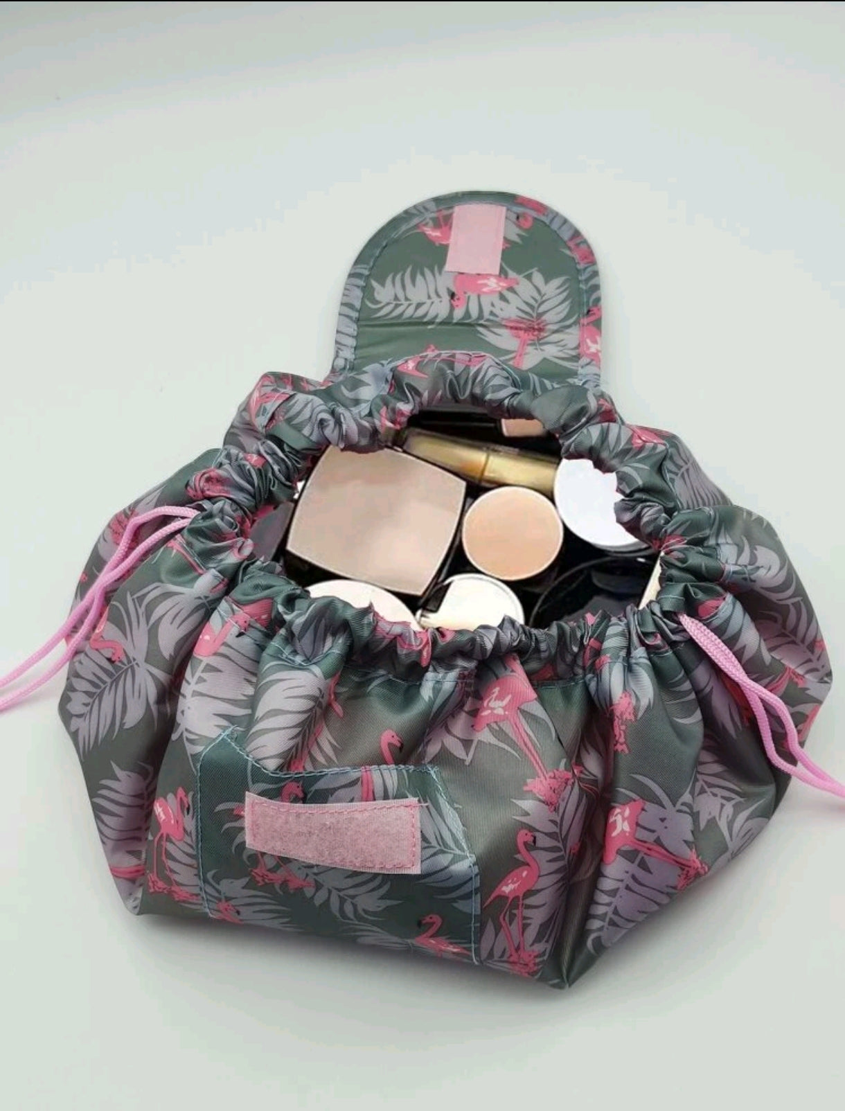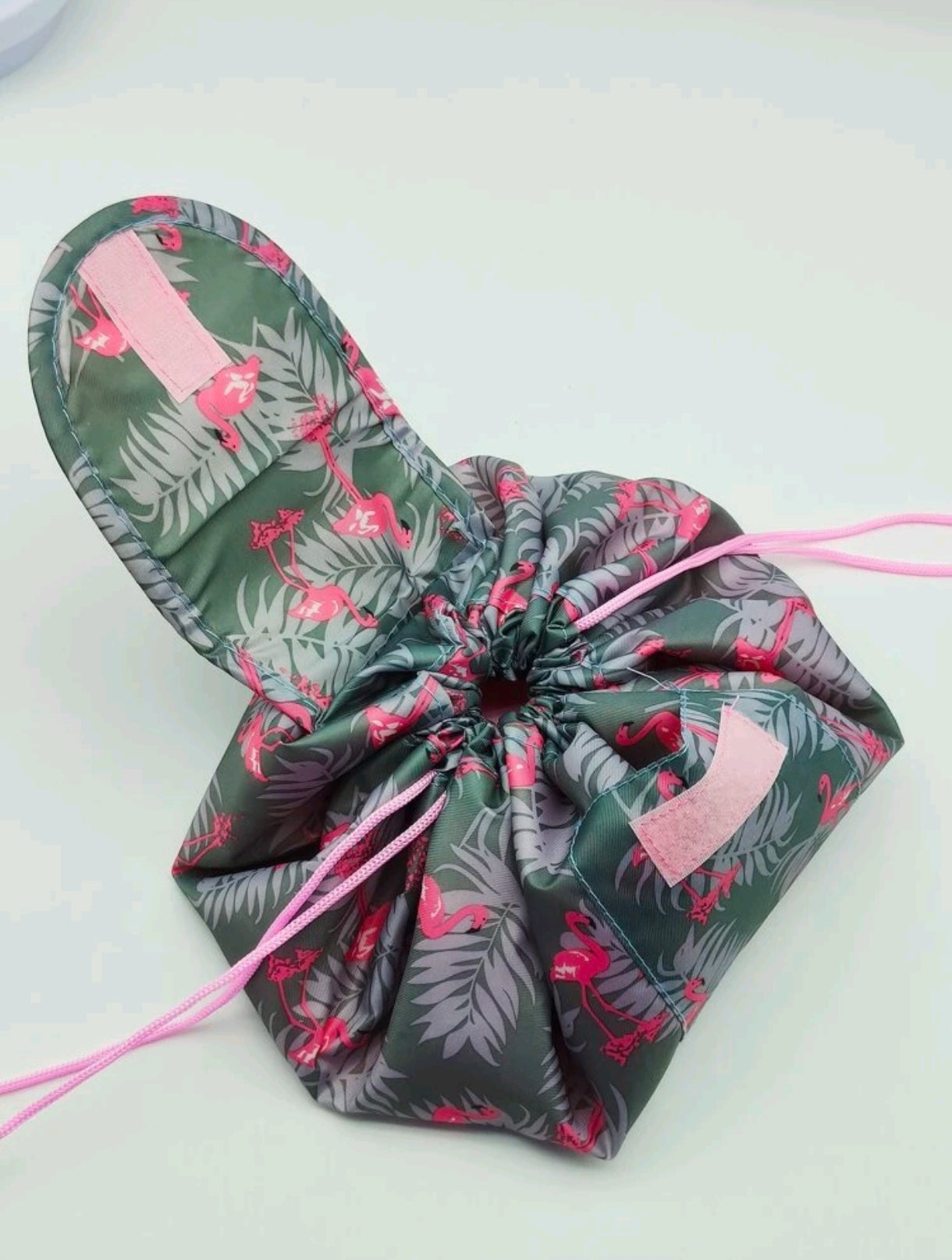 1pc Flamingo Patterned Polyester Drawstring Makeup Bag For Travel Storage Slouchy People Cosmetic Bag High-Capacity Cosmetics Storage Sundry Storage Drawstring Travel Dresser Travel And Bus Slouchy People High-Capacity Lovely Flamingo Waterproof Stylish Madam Student Make Up Organizer Wash Bag Gift For For Girl Women Mom Makeup Brushes Storage