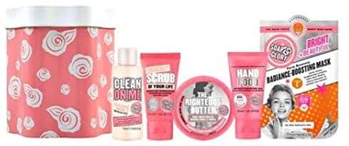 Clean On Me Creamy Moisture Shower Gel 75ml 2.5 Us Fl. Oz Hand Food Non-Greasy Hydrating Hand Cream 50ml 1.69 Us Fl. Oz. Bright + Beautiful Radiance-Boosting Mask 29g Net Wt.1 Oz. The Righteous Butter Body Moisturizer 50ml 1.69 Us Fl. Oz. The Scrub Of Your Life Smoothing Body Buffer 50ml 1.69 Us Fl. Oz.
