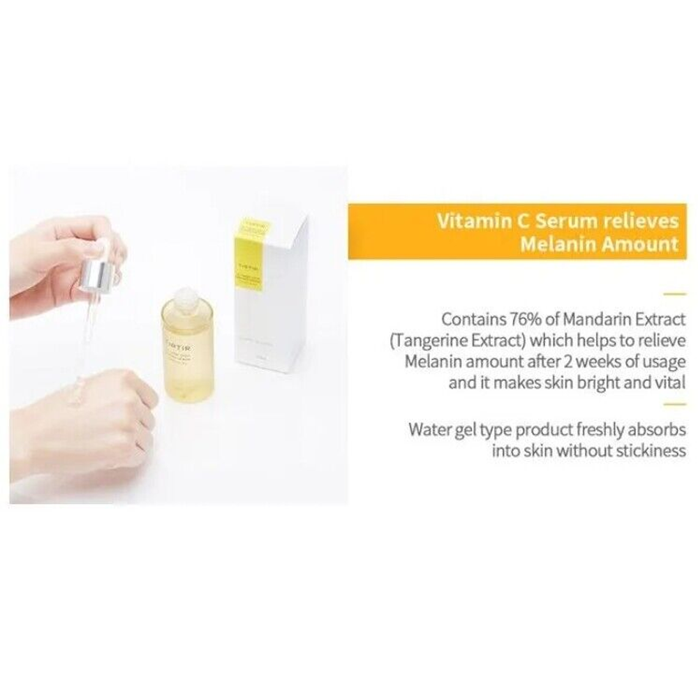 A brightening serum that contains 76% of Citrus Tangerina (Tangerine) Extract from Jeju containing Hesperidin and Vitamin E.