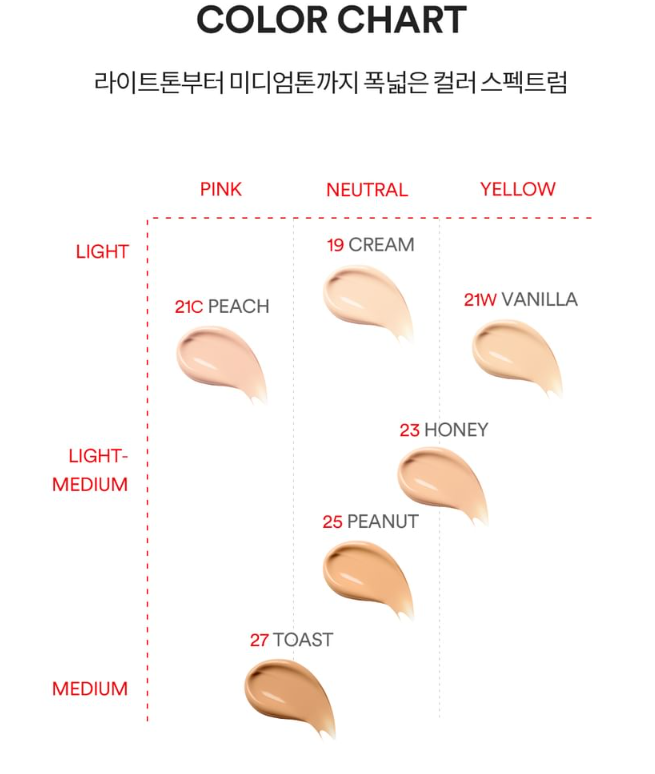 Blended with evenly dispersed particles that effectively adhere to skin without clumping or clogging the pores, naturally concealling imperfections, along with SPF 50+ PA++++ UV protection.