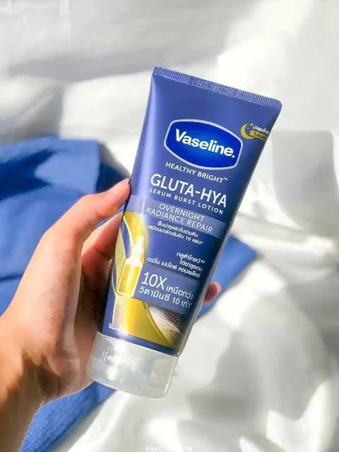 Gluta Over Night Radiance Serum Burst Body Lotion Instantly penetrates into skin cells Make your skin look radiant and full with a unique formula from Vaseline. It helps restore the skin to look radiant Fuller over night with a clinically proven formula and 10 times as compared to the amount of Hyaluronic Acid and Amino Peptide. Apply lotion all over the body on a daily basis, For All Skin Types