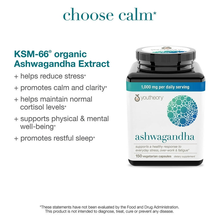 Ashwagandha supports a healthy stress response. Ashwagandha (commonly called Indian Ginseng) is one of the most highly prized botanicals in the ancient Ayurvedic system of India. It is often described as an “adaptogen” because it helps the body adapt to stress. When used regularly over time, Ashwagandha greatly improves the body’s response to both mental and physical stressors, while boosting general well-being. Youtheory Ashwagandha combines whole root powder with concentrated root extract to capture the full range of phytonutrients that are naturally-occurring in Ashwagandha root. This daily stress formula is powered by KSM-66 – the most clinically supported Ashwagandha on the market.