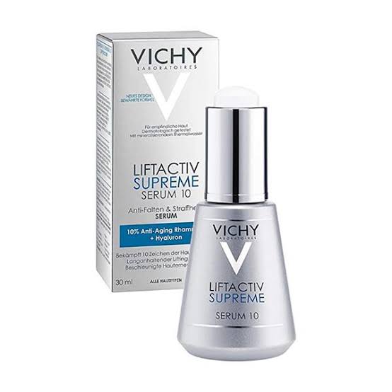 Liftactiv Serum 10 Supreme targets 10 signs of ageing whilst accelerating surface skin cell renewal. With over 10 years of research and 10 proofs behind it, including instrumental and clinical tests, it is Vichy's most powerful anti-wrinkle serum. The unique formula is enriched for the 1st time with 10% Rhamnose and both Hyaluronic Acid and fragmented Hyaluronic Acid. The ultra-concentrated formula delivers up to 2 times more Rhamnose in the epidermis* and helps accelerate surface skin cell renewal. The Skin looks firmer as if lifted and wrinkles look reduced.