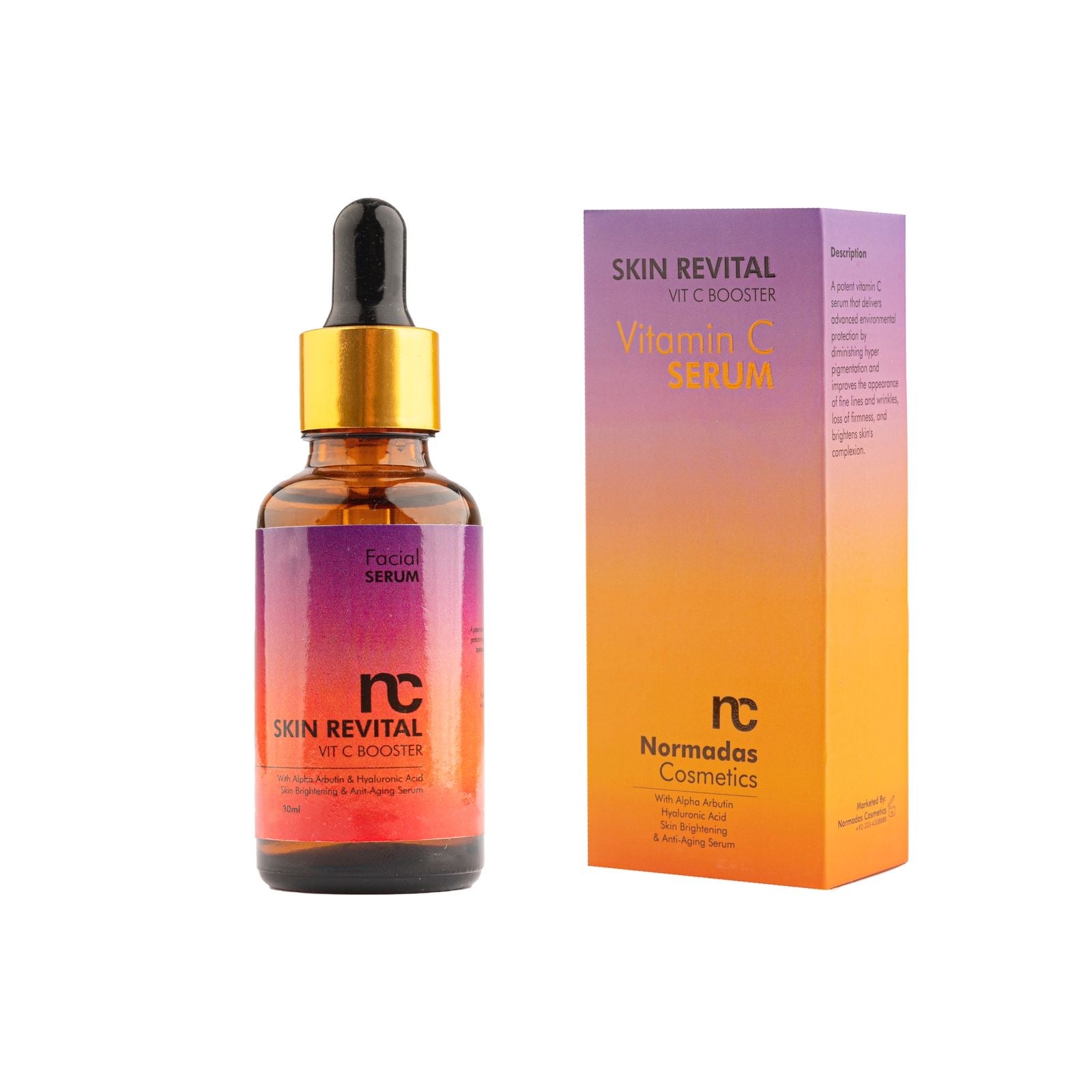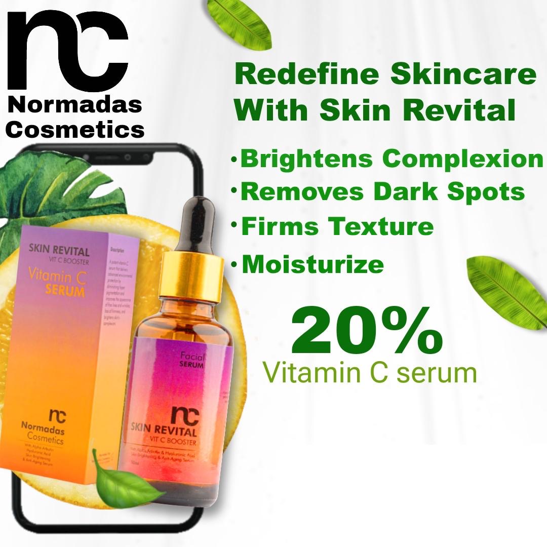 Normadas Cosmetics has launched a vitamin C serum " Skin Revital Vitamin C serum" in Pakistan. It really works well and one can start seeing improvement in 20-30 days. It contains 20% Vitamin C . It has a combination of Alpha Arbutin, ferulic acid, and hyaluronic Acid.