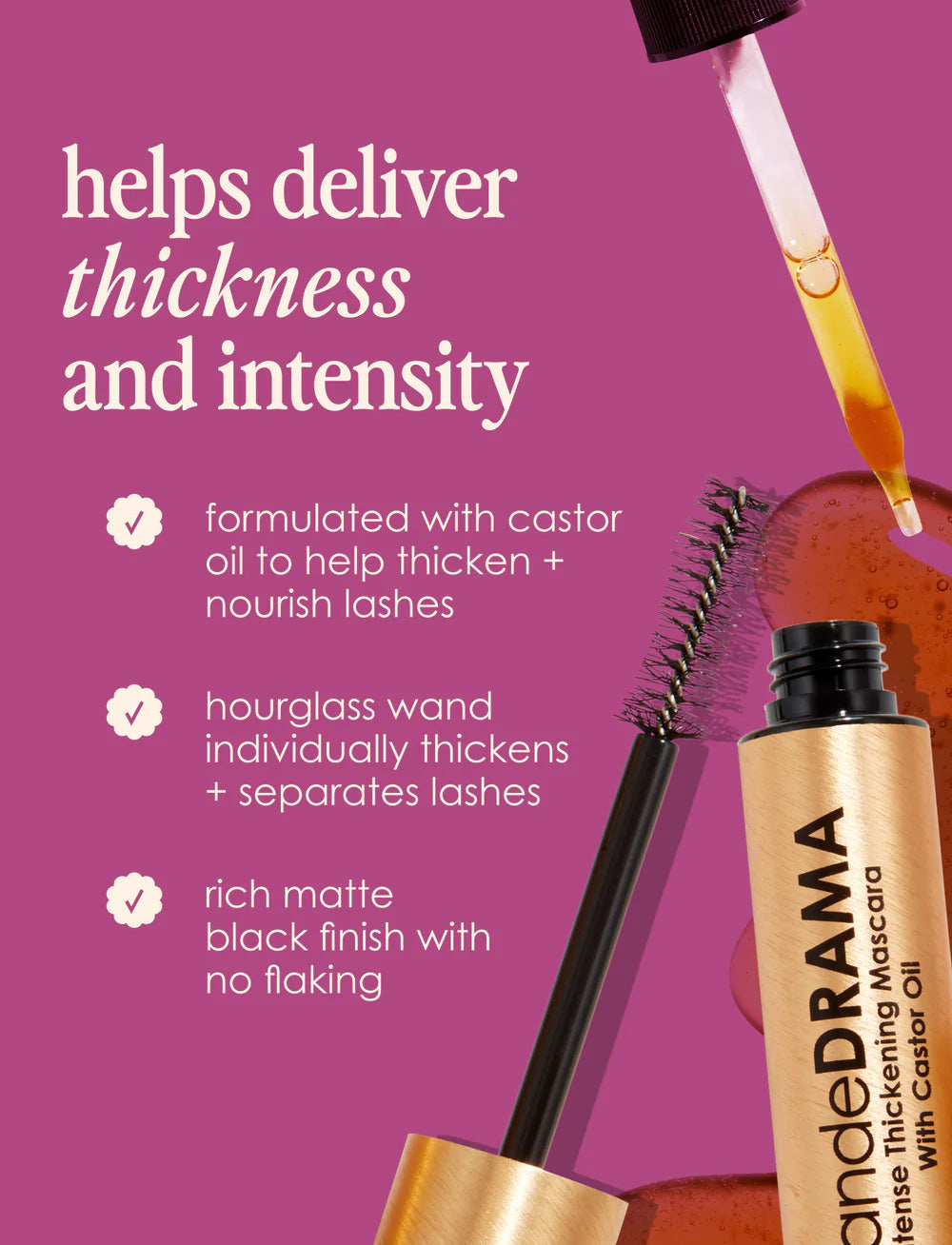 – Castor Oil: Promotes stronger, thicker, bolder-looking lashes while preventing breakage.