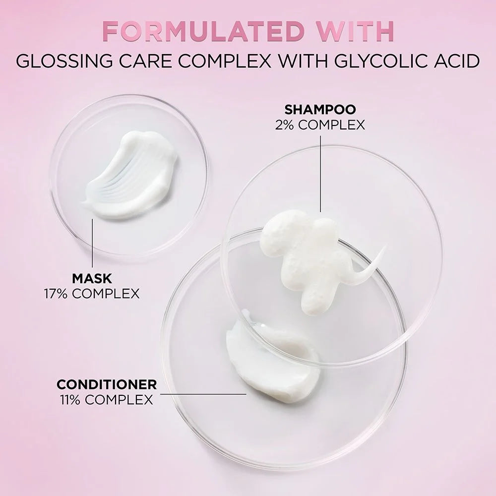 • Glossing Shampoo, Moisturizing Conditioner, and Nourishing Hair Mask system instantly boosts hair shine by intensely smoothing hair fibers to beautifully reflect light