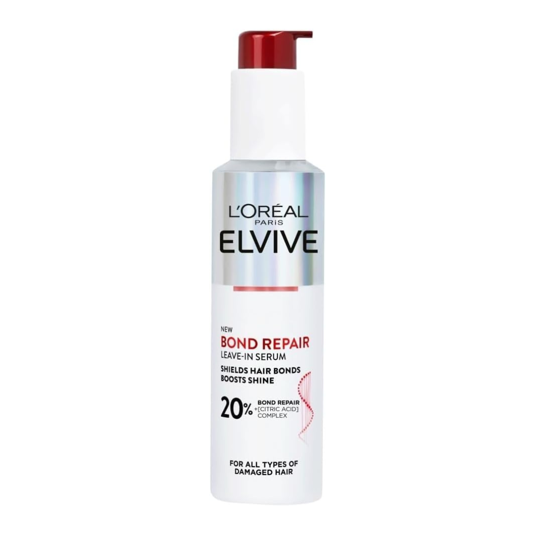 Our deepest repair to instantly transform your hair. Discover the New Elvive Bond Repair Leave-In Serum by L’Oréal Paris.This leave-in serum forms the fourth and final step in the new Bond Repair haircare routine for stronger hair with maximum shine and heat protection. Hair is made up of millions of bonds that give it structure and strength. When hair bonds break, through brushing, bleaching, heating, and styling, hair becomes weak and damaged. For the first time, our formula powered by Citric Acid Complex targets damaged hair. Up to 12x less split-ends¹, 98% stronger hair² & 82% more shine². Suitable for all types of damaged hair.