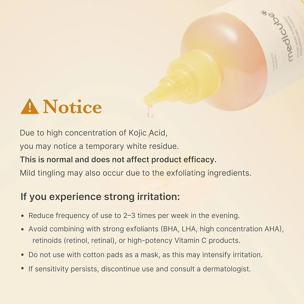 [Advanced Formula] A potent blend of Kojic Acid, Turmeric, Glycolic Acid, and Niacinamide that works in harmony to exfoliate, smooth, and brighten overall skin tone—revealing a clearer, more radiant, glass-like complexion.