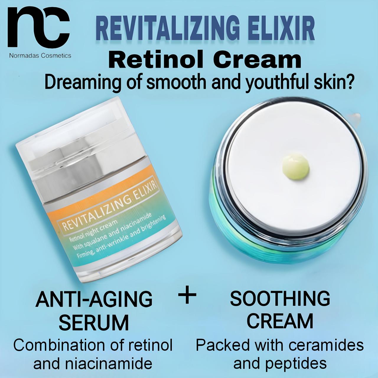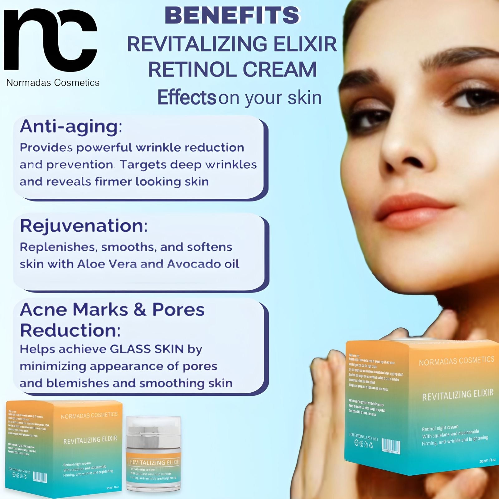 Retinol Revitalizing elixir helps to progressively improve the texture, appearance of wrinkles and skin discolouration. A unique amalgamation of ingredients like niacinamide, squalane, ceramides and peptides start working from the initial application. A cutting edge formula that not only wards off damage but a key to unlock youthful , glowy skin. Retinol and blend of super skin food reboots your skin back to its healthiest, most youthful state.