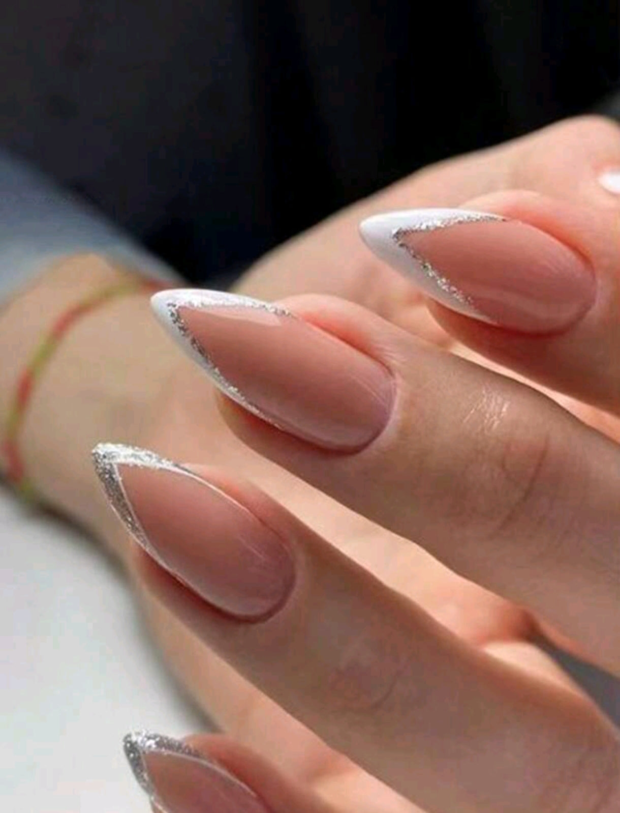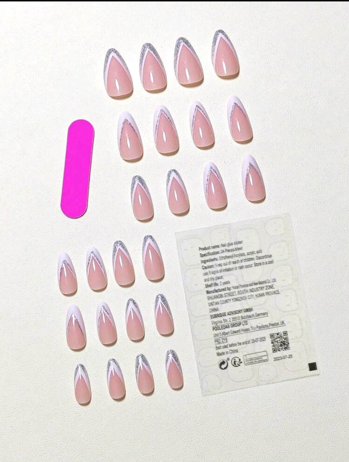 Shein Glamorous Nails French Glitter Style 24pcs False Nails