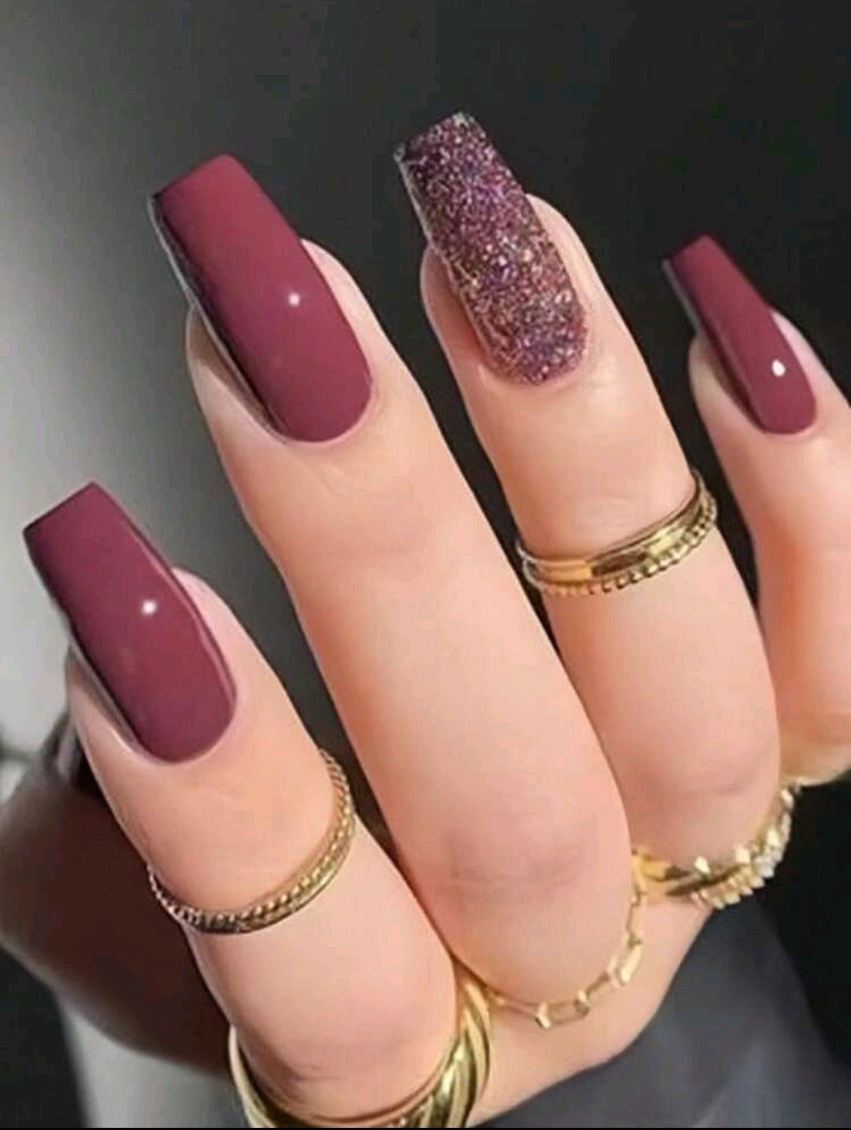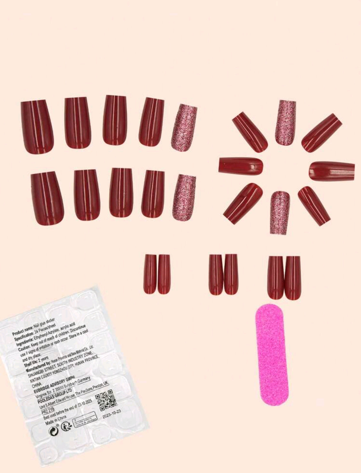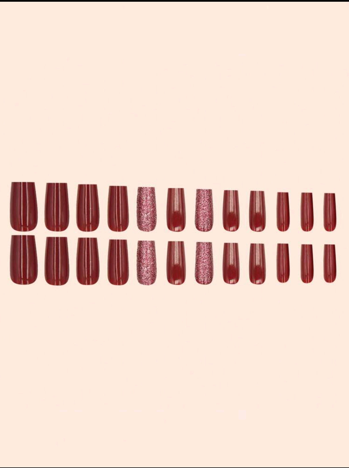 Increase quantity for Shein Wine Red Solid Color Nails 24pcs