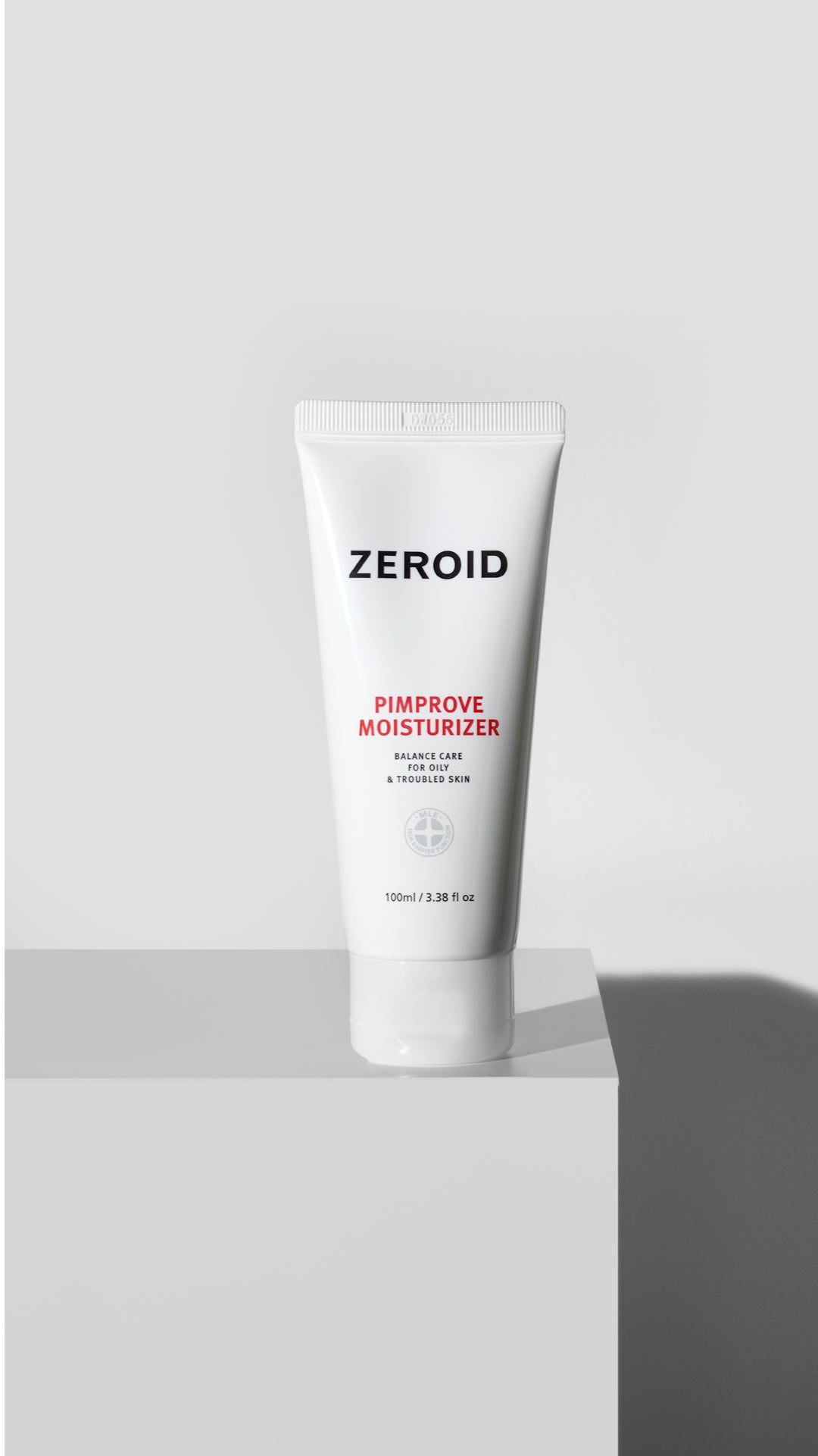 Zeroid Pimprove Moisturizer is a hypoallergenic facial lotion developed for oily, combination, and acne-prone skin, providing targeted relief for irritation and sensitivity. Using TP Emulsion technology, it balances oil production, minimizes stickiness, and helps maintain a soft matte finish for clearer-looking skin. Its MLE formula reinforces the skin barrier, creating a strong moisture-retaining shield that defends against external irritants. Enriched with Restomide, it also calms redness and discomfort, delivering fast and lasting soothing effects. Clinically tested, this moisturizer has shown visible results within 4 weeks, including a 62% reduction in oil, 46.9% fewer blackheads, and 37% fewer whiteheads, making it a reliable daily solution for acne management.